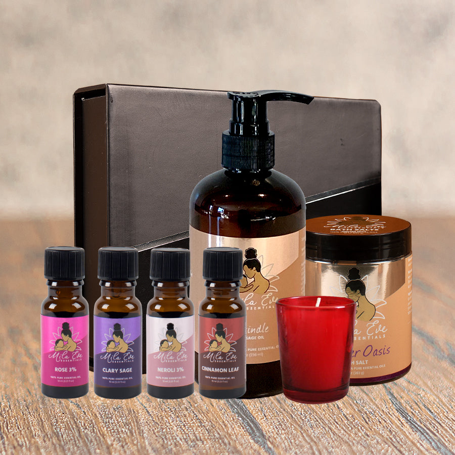 Whether you’re new to love or rekindling love, this kit will boost you to a new level, while also boosting your libido. Why buy flowers when essential oils are flowers in a bottle... and they last longer with everlasting effects! Packed with known aphrodisiacs, it’s a one stop shop for a satisfying evening. This kit includes a special edition Massage Oil – Rekindle, which includes a stimulating mix of Rosewood, Ylang Ylang, Rose, and Jasmine essentials oils and Lavender infused soy candle.